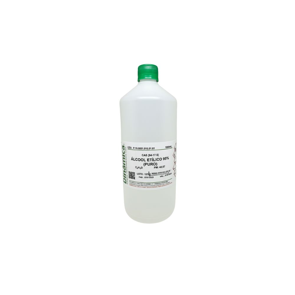 Álcool Etílico 95% Puro é uma solução de etanol em água que contém 95% de álcool por volume sendo a concentração mais comum para fins de desinfecção e uso laboratorial ele é um líquido incolor volátil e inflamável de odor característico é amplamente utilizado como um poderoso agente antisséptico e desinfetante devido à sua capacidade de desnaturar proteínas de microrganismos sendo eficaz contra bactérias e muitos vírus em laboratórios é um solvente orgânico versátil usado em extrações limpeza de vidrarias e na preparação de soluções e reagentes o restante 5% da solução é composto por água o que é necessário pois o etanol forma um azeótropo com esta concentração não podendo ser destilado para 100 por cento sem o uso de agentes desidratantes ele deve ser armazenado em locais frescos e bem ventilados devido à sua inflamabilidade.