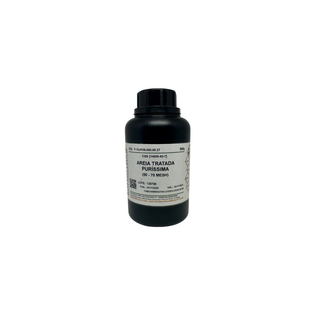 Areia Tratada Puríssima 50-70 Mesh Calcalina 500g Dinâmica é um material laboratorial de alta pureza com granulometria controlada entre 0,21 e 0,30 milímetros. Vem em embalagem com 500 gramas fabricada pela Dinâmica. A areia passou por tratamento alcalino ou calcinação para remoção de impurezas. Utilizada como suporte inerte em extrações e análises químicas, leito filtrante em colunas cromatográficas, auxiliar de secagem, meio dispersante para homogeneização de amostras, substância para banhos de areia em aquecimento uniforme, e suporte para reações químicas. A granulometria controlada garante uniformidade e o tratamento elimina contaminantes que poderiam interferir em análises. Deve ser armazenada em recipiente fechado em local seco. Pode ser reutilizada após lavagem e calcinação adequadas.