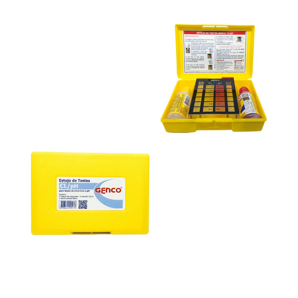 Estojo de Análises Cloro e pH é um kit portátil para análises colorimétricas de água usado em piscinas, spas, estações de tratamento e controle de qualidade. Contém reagentes, comparadores colorimétricos e tubos de teste para medição rápida de cloro livre, cloro total e pH. Apresenta-se em maleta compacta com compartimentos organizados. Utilizado em monitoramento de qualidade da água em piscinas, controle de desinfecção, análises de rotina em indústrias alimentícias e farmacêuticas, verificação de cloração e medições rápidas em campo. Geralmente inclui reagentes DPD para cloro, indicador de pH, tubos de teste graduados, comparador colorimétrico com escala de cores, manual de instruções e pipetas. Oferece praticidade para análises no local, resultados rápidos por comparação visual, portabilidade, custo acessível e não requer calibração complexa. Armazenar reagentes em local fresco e seco protegido da luz. Verificar prazo de validade. Seguir instruções para interpretação correta das cores. Lavar tubos após uso.