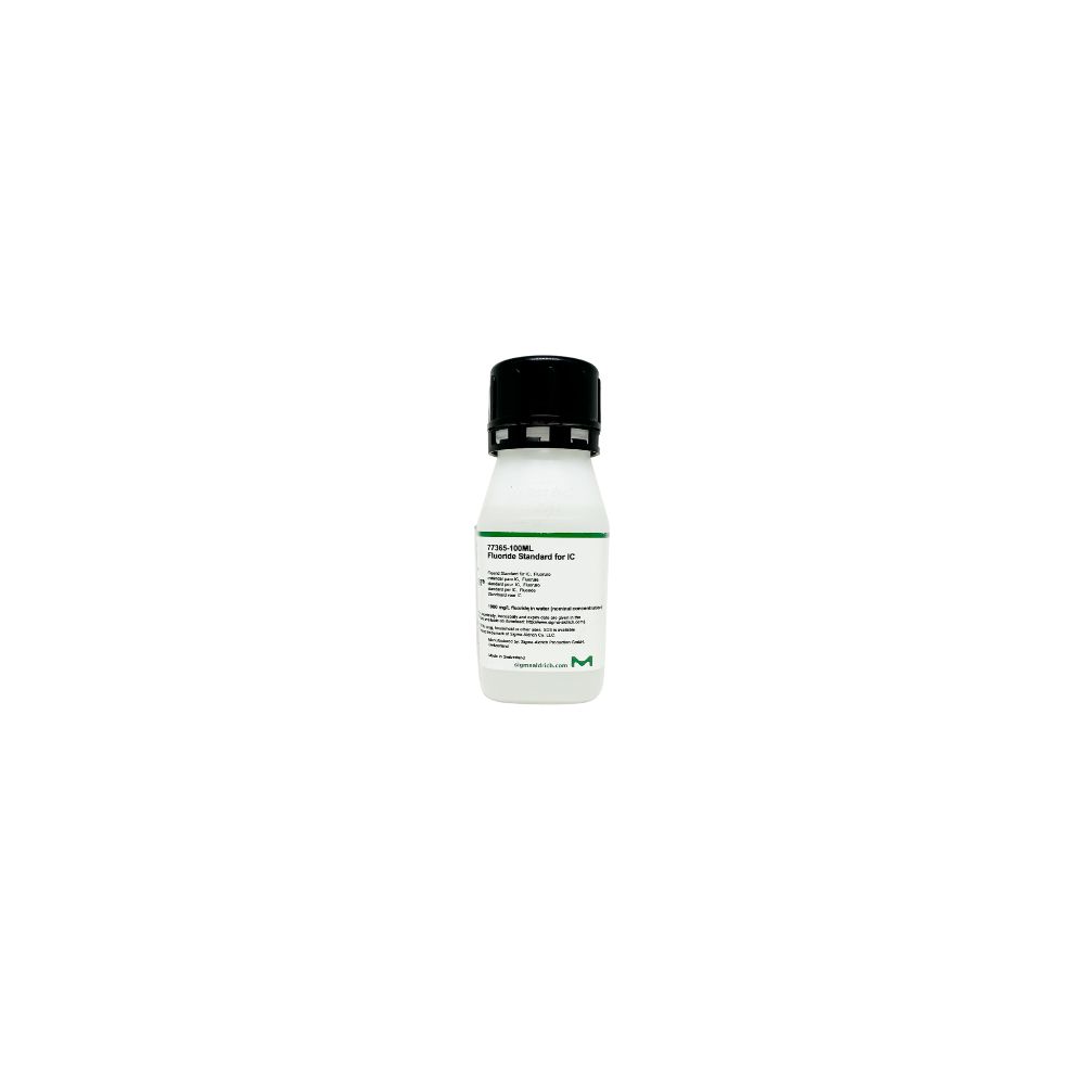 É uma solução de referência certificada contendo íons fluoreto (F⁻) em concentração exata de 1000 mg/L (ppm), com volume de 100 mL, fabricada pela Sigma, marca reconhecida em reagentes analíticos. É um reagente de alta pureza utilizado como padrão para calibração de equipamentos e preparação de curvas analíticas em laboratórios de análises químicas. Suas principais aplicações incluem análise de fluoreto em água, alimentos, produtos odontológicos e controle de qualidade laboratorial.